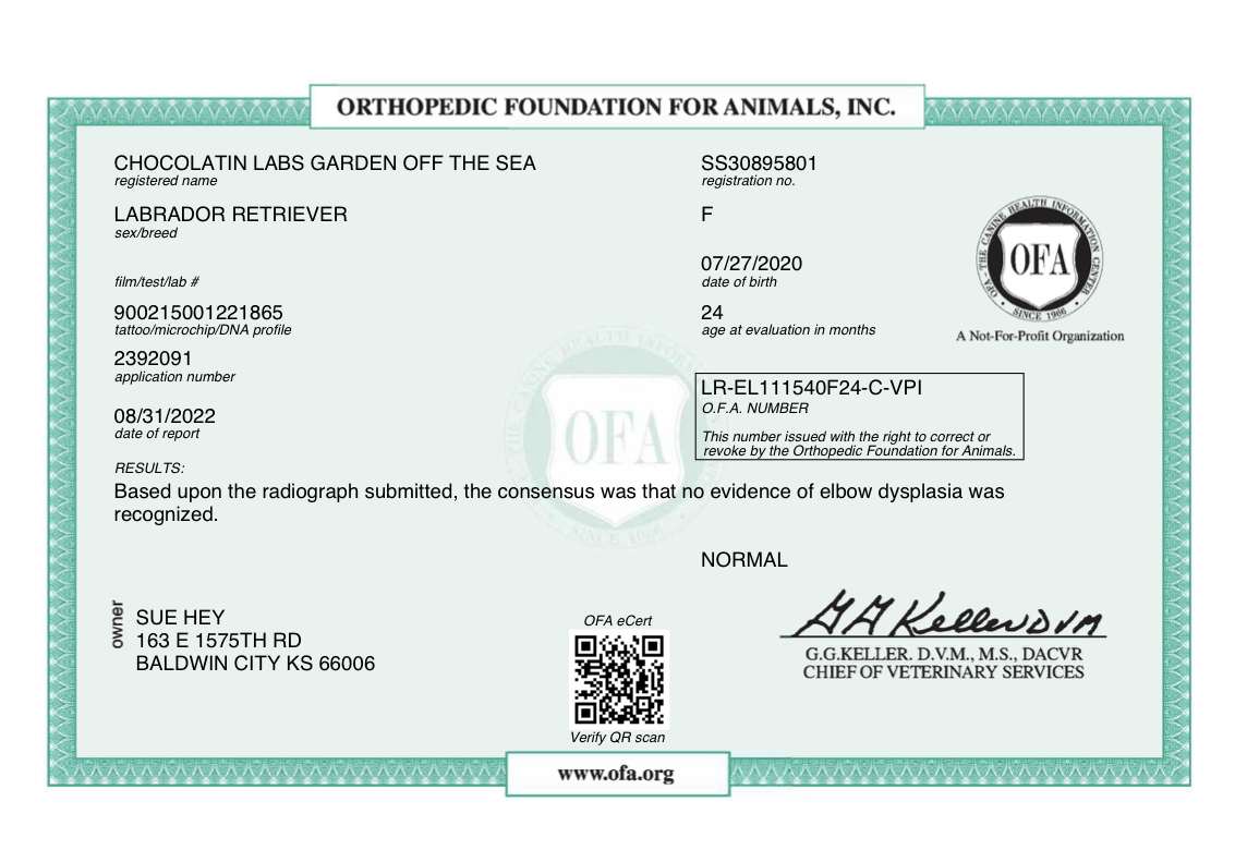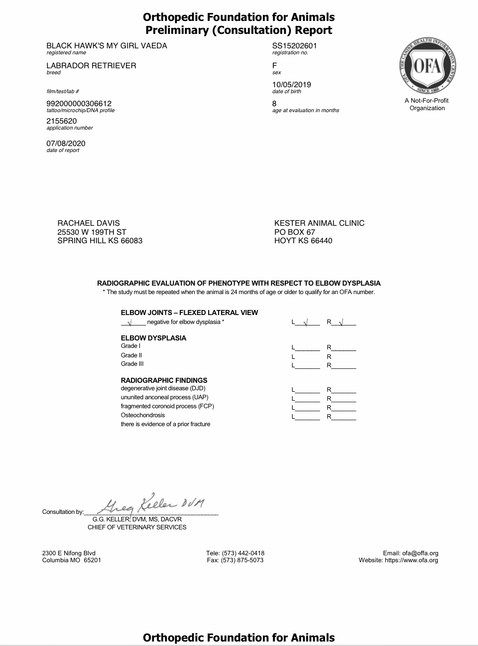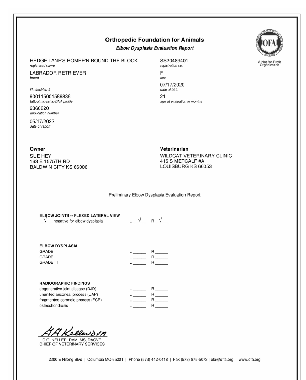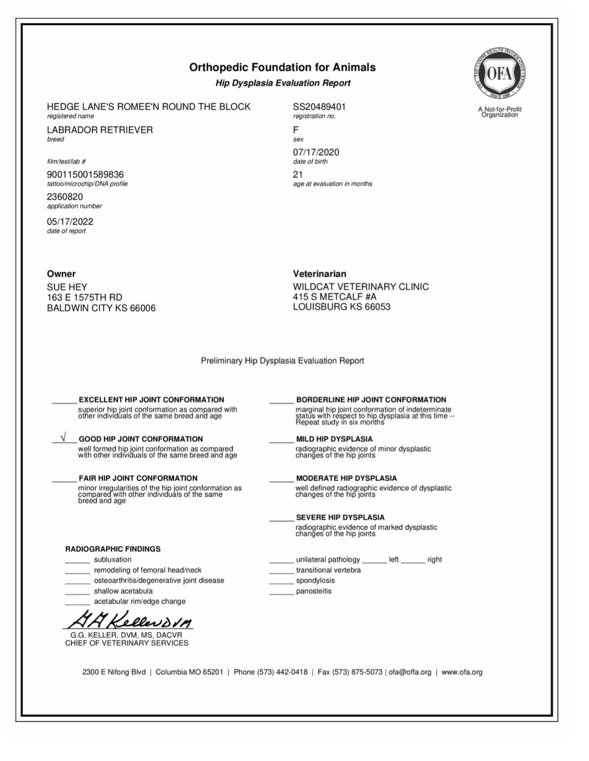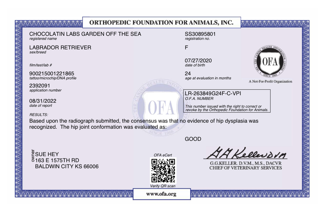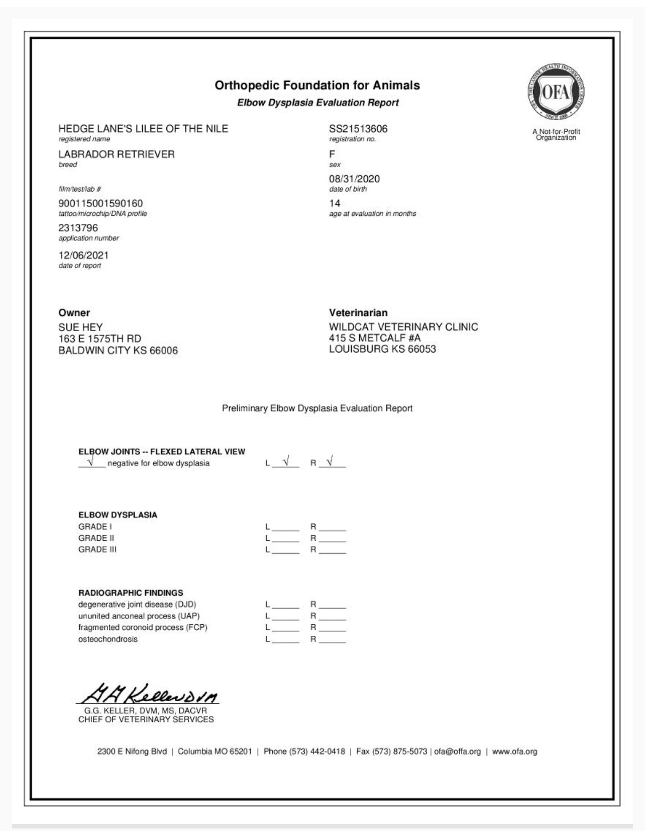 Sales Receipt/Health Guarantee that covers hip dysplasia, (any pup diagnosed with moderate or severe hip dysplasia before the age of 2) elbows, eyes, and all 177 genetic diseases we test for through Embark along with 2 new diseases we test for through paw prints.