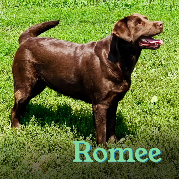 Romee was born here from our Graycie & Nash litter. She is a ball of energy & a natural born Hunter & would love to focus on that once she retires next year.