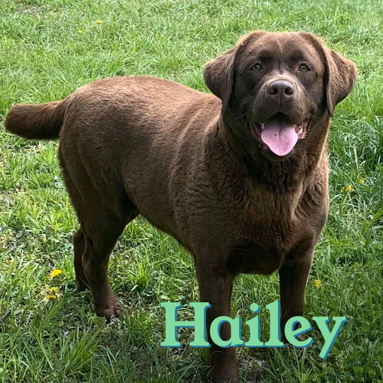 Sloan is an English lab born here as part of our Gracie and Apollo litter. She is one of the most affectionate dogs that we have. She enjoys her days with her guardian/forever home with her sister, Roxee. She is a great mother and loves every second with her babies.