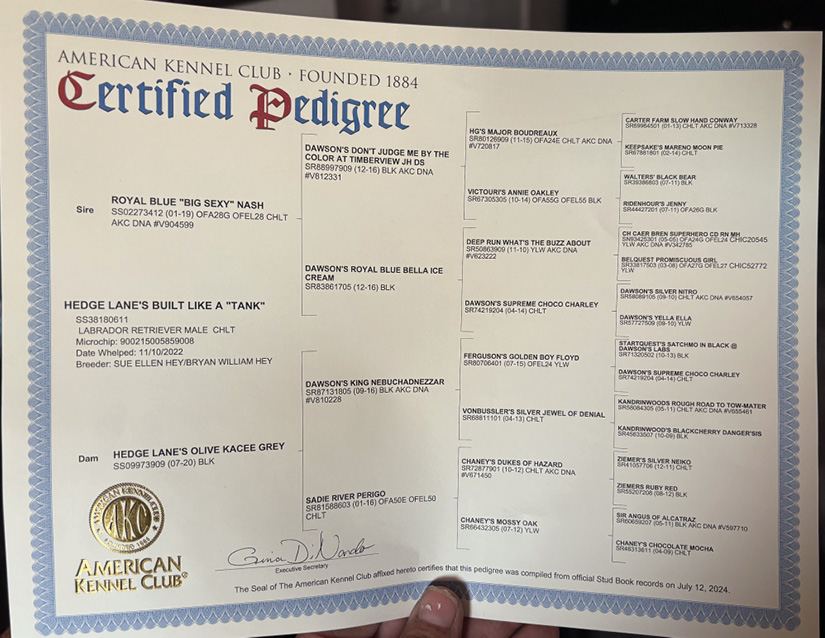Iceman is a tank weighing in at 110 lbs! He is no relation to Nash. We purchased him from Sinking Creek Labradors and boy was it one of the smartest decisions we’ve made-genetically, physically, mentally!